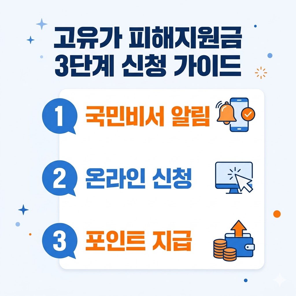 - 신청 방법: 자주 쓰는 앱(네이버/카톡/토스) 실행 → 국민비서 메뉴 → 고유가 피해지원금 체크