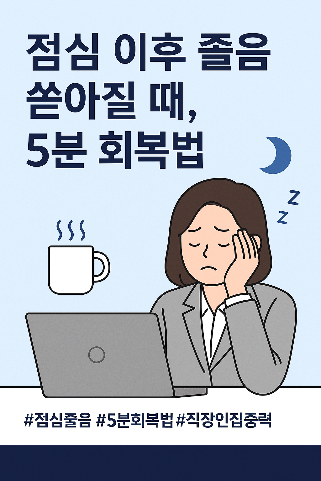 오늘부터는 단 5분만 투자해서 졸음을 깨우고 **“오후의 집중력”**을 되찾아보세요!