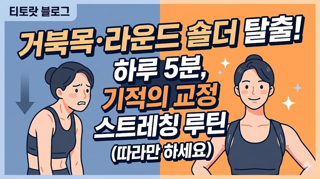 하지만 중요한 건 **'꾸준함'**입니다. 오늘 한 번 하고 까먹으면, 내일 아침엔 다시 거북이로 변해있을지도 모릅니다. 오늘부터 매일, 딱 5분만 내 몸에 투자해 보세요. 활짝 펴진 어깨와 당당한 목선이 여러분의 일상을 바꿀 것입니다.