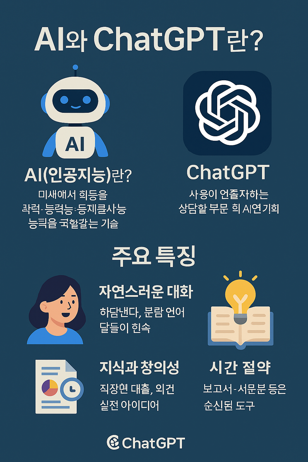하지만 솔직히 말해, AI가 정확히 뭔지, ChatGPT가 뭔지 잘 설명하려면 막막해지죠.