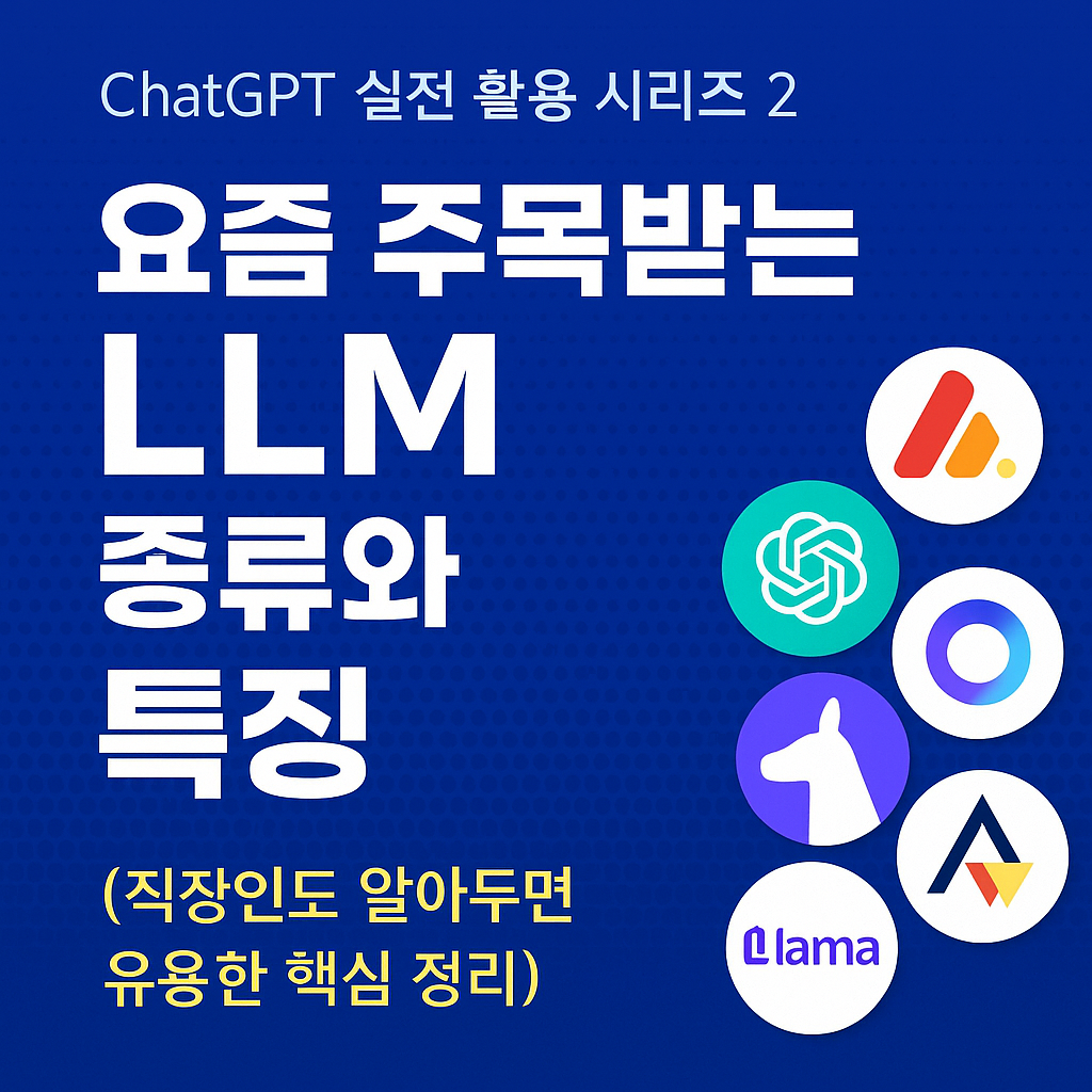 오늘은 직장인도 알아두면 유용한 대표적인 LLM 종류와 특징을 간단하게 정리해드릴게요.
