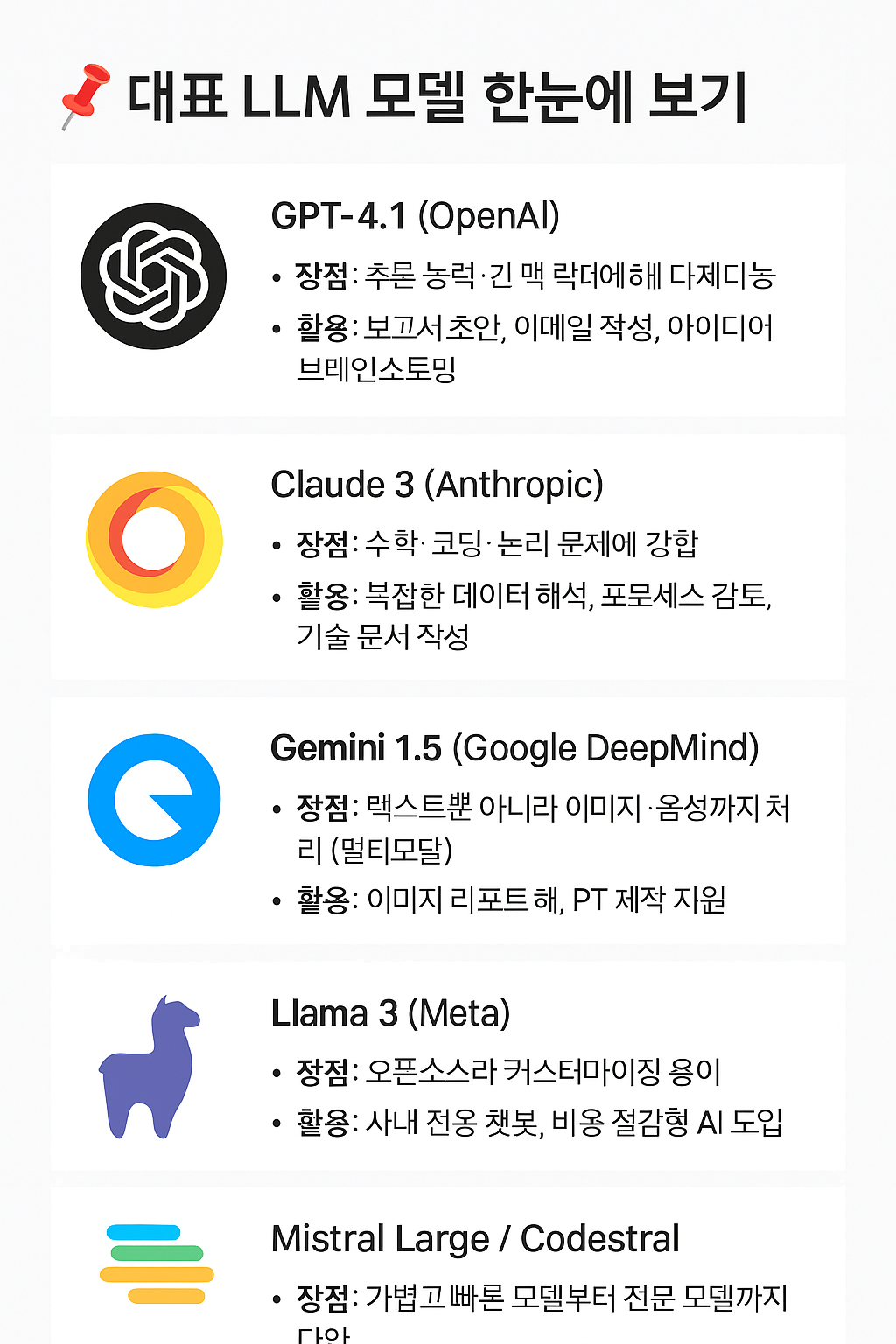 📌 대표 LLM 모델 한눈에 보기