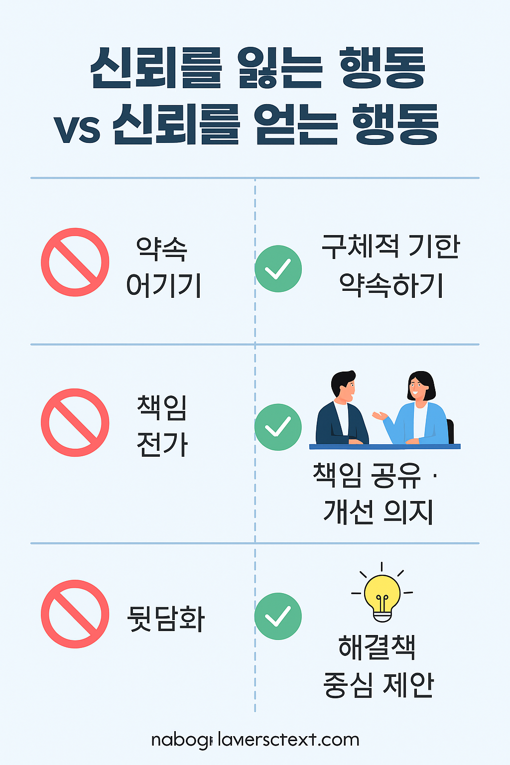 • ❌ 약속을 지키지 않는 태도 → ✅ 현실적이고 구체적인 약속